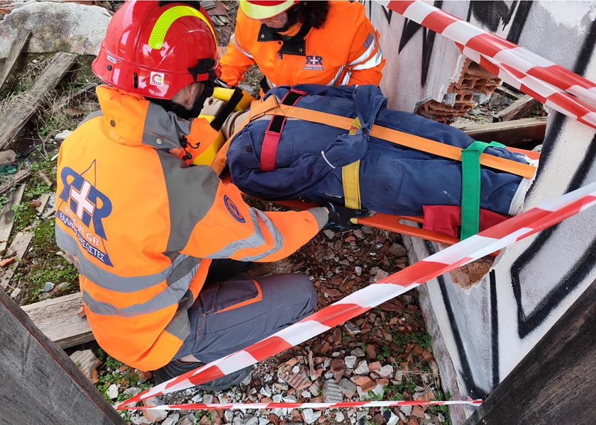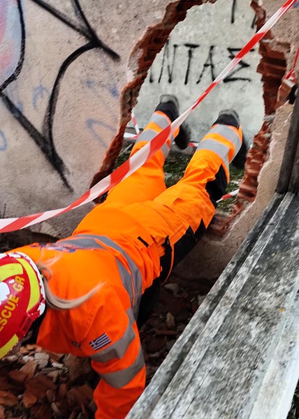 Οι διασώστες κλήθηκαν να κινηθούν μέσα από στενά ανοίγματα, σπασμένες επιφάνειες, επικίνδυνα υλικά και περιορισμένο χώρο κίνησης, εφαρμόζοντας πρωτόκολλα ασφαλείας και διαδικασίες Search & Rescue.